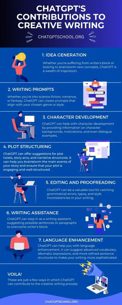 Here are some ways in which ChatGPT can contribute to the creative writing process: