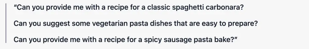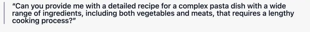 For example, suppose you want to ask ChatGPT to generate a recipe for a specific type of pasta dish. A complex prompt might look like this: