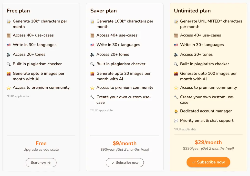 One of the best AI writing tools I’ve used has to be Rytr. It’s also one of the better priced writing tools with plans starting at Free, to just $29 a month for the Unlimited plan. (I would start out with the free plan to see if I like the platform, then upgrade to a larger one if I need to.)