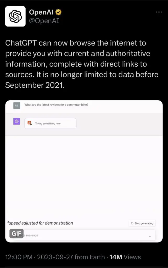 In late September, OpenAI, creator of ChatGPT announced that “ChatGPT can now browse the internet”, on “X” (the platform formerly known as Twitter).